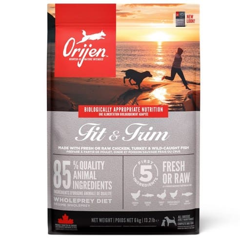 오리젠 피트 앤 트림 독 사료는 고단백, 저탄수화물 기반의 제품으로, 과체중 강아지에게 적합합니다.